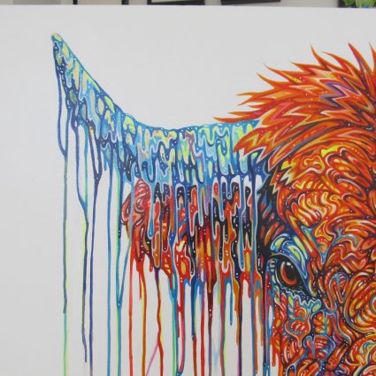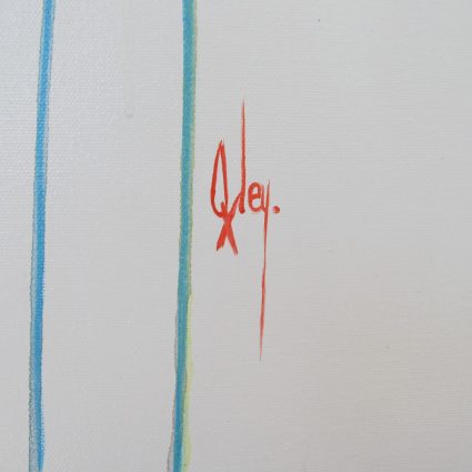 Oxley’s dripping paint technique involves applying paint to canvas by allowing it to drip and flow, this method creates spontaneous, abstract patterns and textures, adding a sense of unpredictability and excitement to the artwork controlled by the artists movements. This unpredictability is central to the technique as it reflects Oxley’s spontaneity and freedom in the creative process, resulting in a dynamic and highly intuitive artwork.